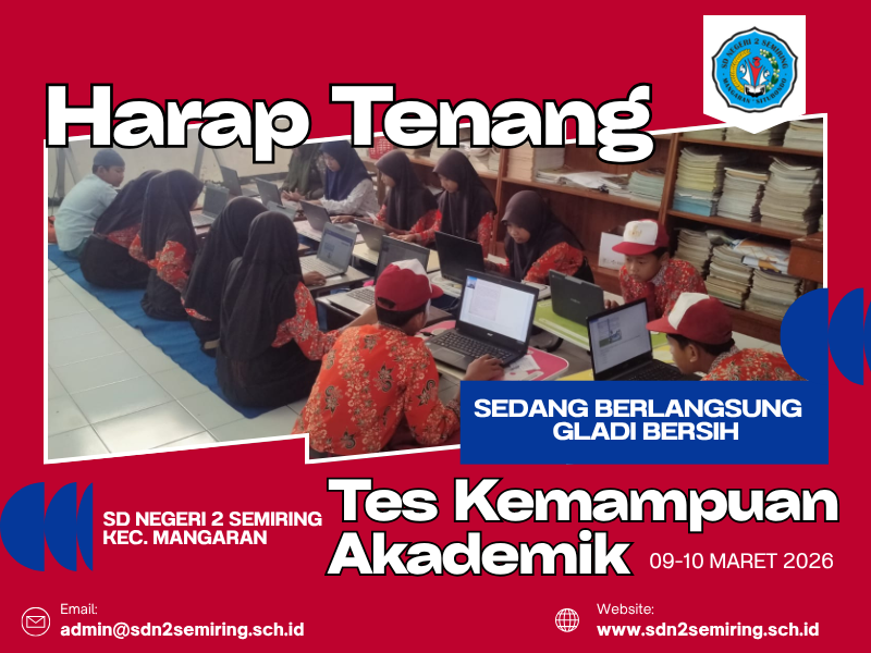 Dengan terlaksananya gladi bersih ini, diharapkan seluruh siswa SD Negeri 2 Semiring dapat lebih siap dan percaya diri dalam menghadapi Tes Kemampuan Akademik yang akan datang.
